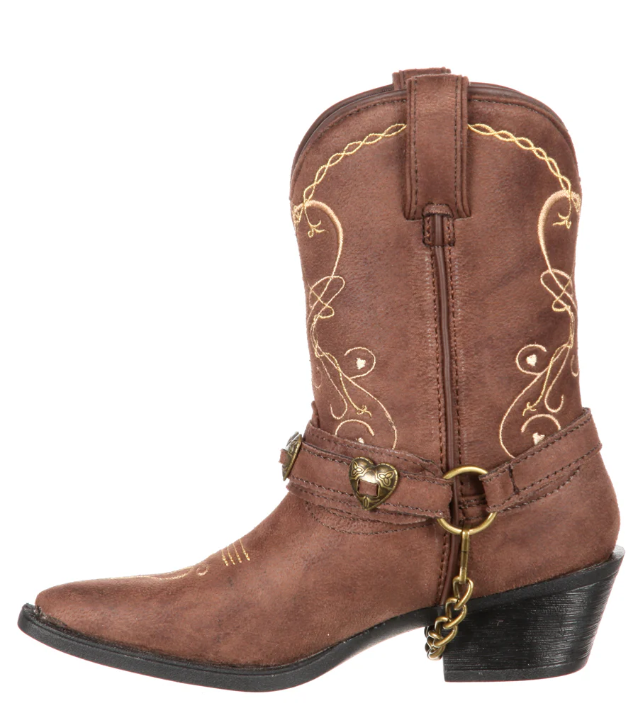 Your little cowgirl will hit the playground in style in these sweet boots. Featuring removable conch straps and metal hardware along with embroidery on the shaft and foot, these boots let your little one shine. They have a man-made upper and PVC outsole, so they can handle the toughest wear. With the comfort flex insole and snip toe, these boots are comfortable while maintaining their style and durability.