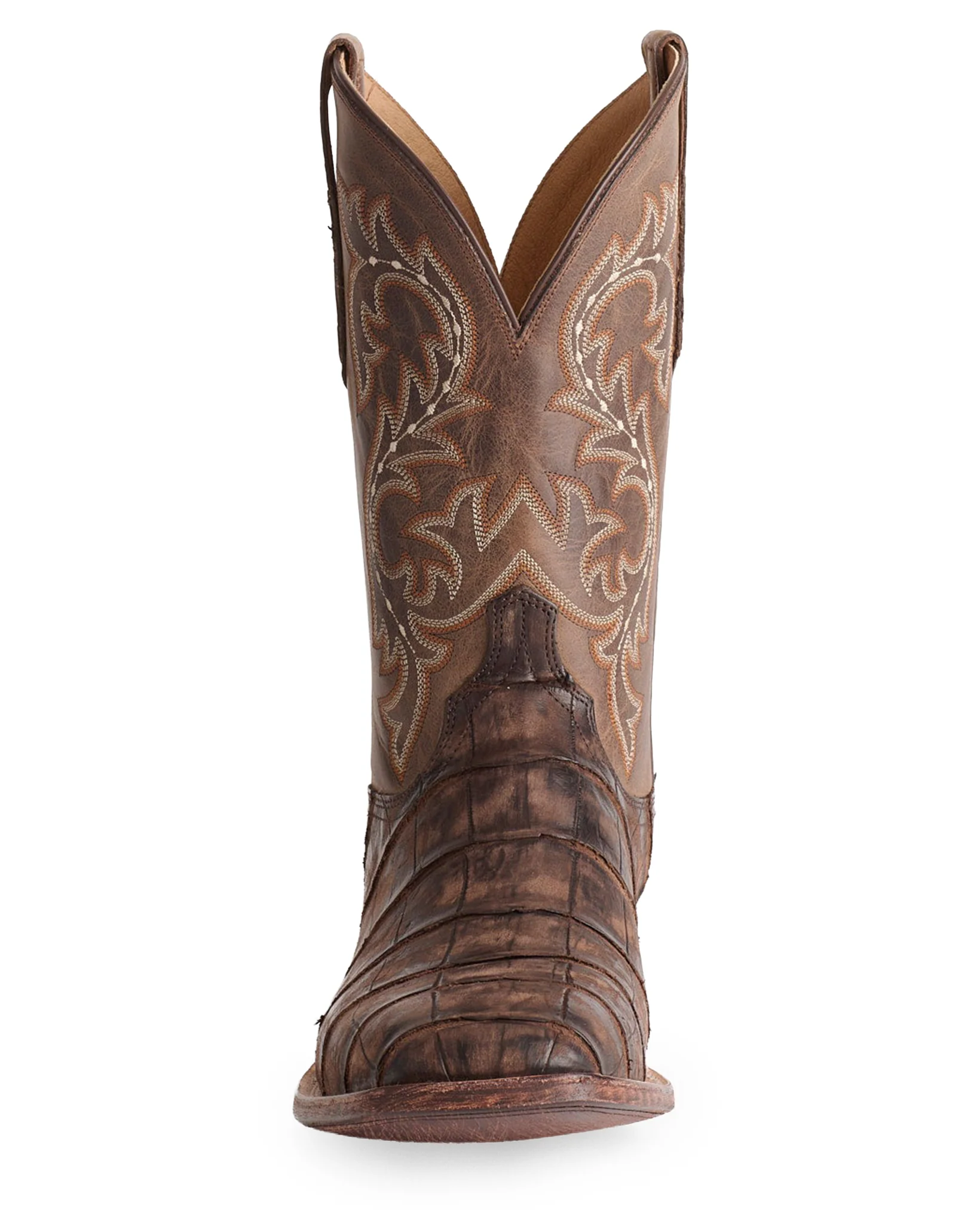 Introducing the Malcom: the one, the only genuine Giant Alligator Horseman Boot out there! Crafted with impeccable detail by our highly skilled artisans, this sleek luxury boot is made to last. Perfect for any cowboy looking to add luxurious style that stands out in a crowd, this marvelous creation will make heads turn with one glance. With these boots on your feet, you are sure to show off your love of quality and hard work. The wild-caught Giant Alligator leather stands up on its own and mesmerizes onlookers from far away. This Lone Star staple will be one to watch when it comes to fine western fashion, so don't hesitate any longer. Indulge in rich culture and exquisite details that set you apart now- pick up your pair of Men's Giant Alligator Boots today!