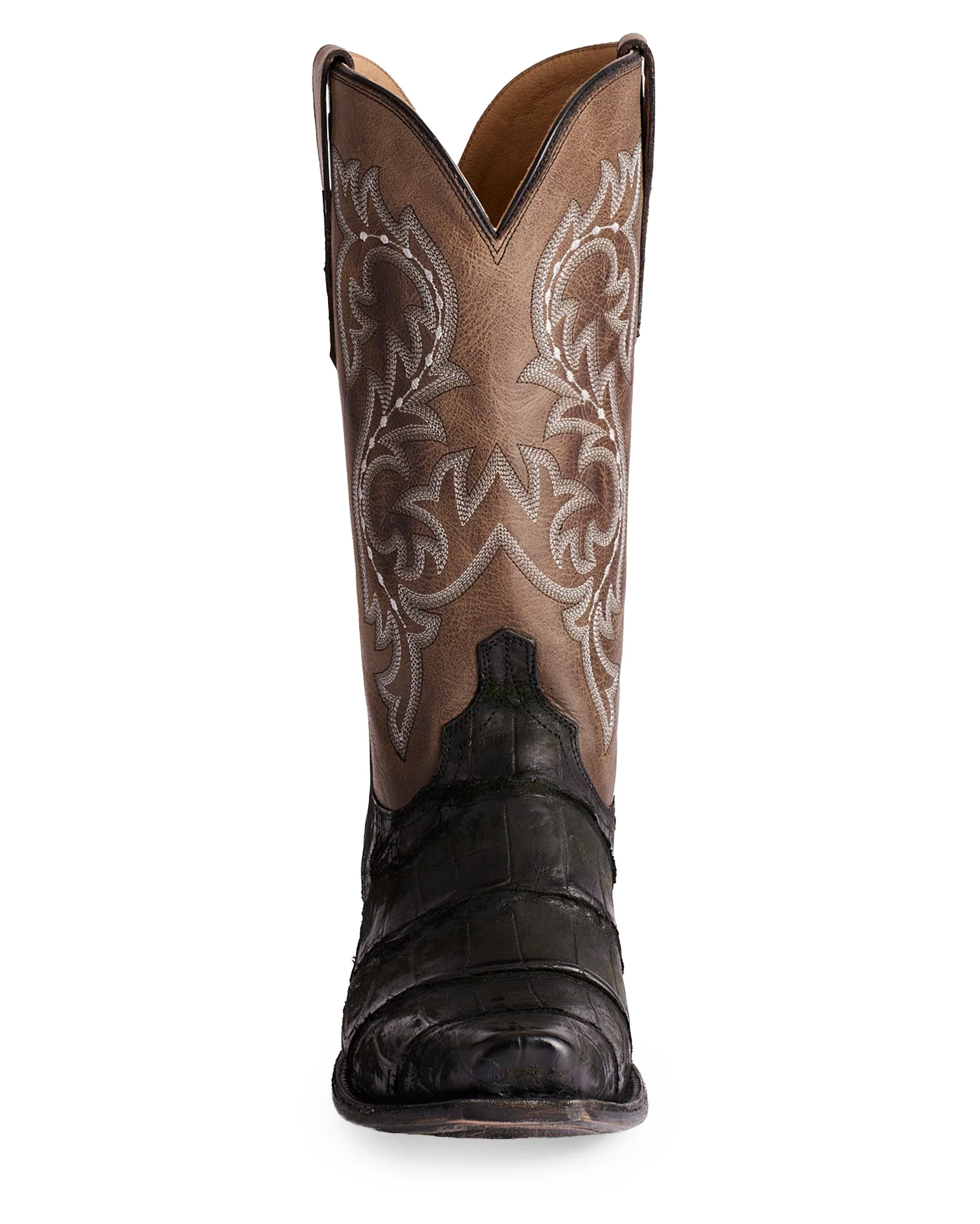 These boots are literally one of a kind. Given the exotic alligator skin, each pair of these Lucchese boots are unique. The vamp features the alligator in a distressed finish that gives them depth and interest. The shaft is adorned with a beautiful multi-colored stitching. The handmade quality of these boots is evident throughout. You’ll be dressed to impress anytime you wear these special boots. M3196