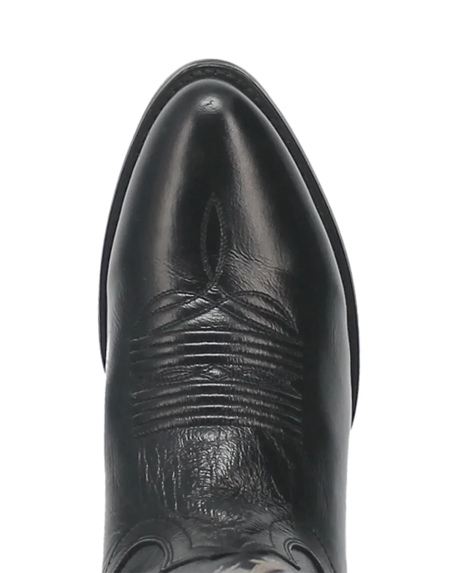 Whether you're on the ranch or in the city, these boots will take you there. With genuine leather uppers and full leather lining, these Dan Post boots are a staple for any cowboy's wardrobe. The black leather and subtle stitching give them a dressy look that can be worn for a special night out. Dress them down with your favorite pair of jeans and a blazer and you're all set for date night. These boots offer a comfort insole and moisture wicking to help keep your feet comfortable and dry all day.