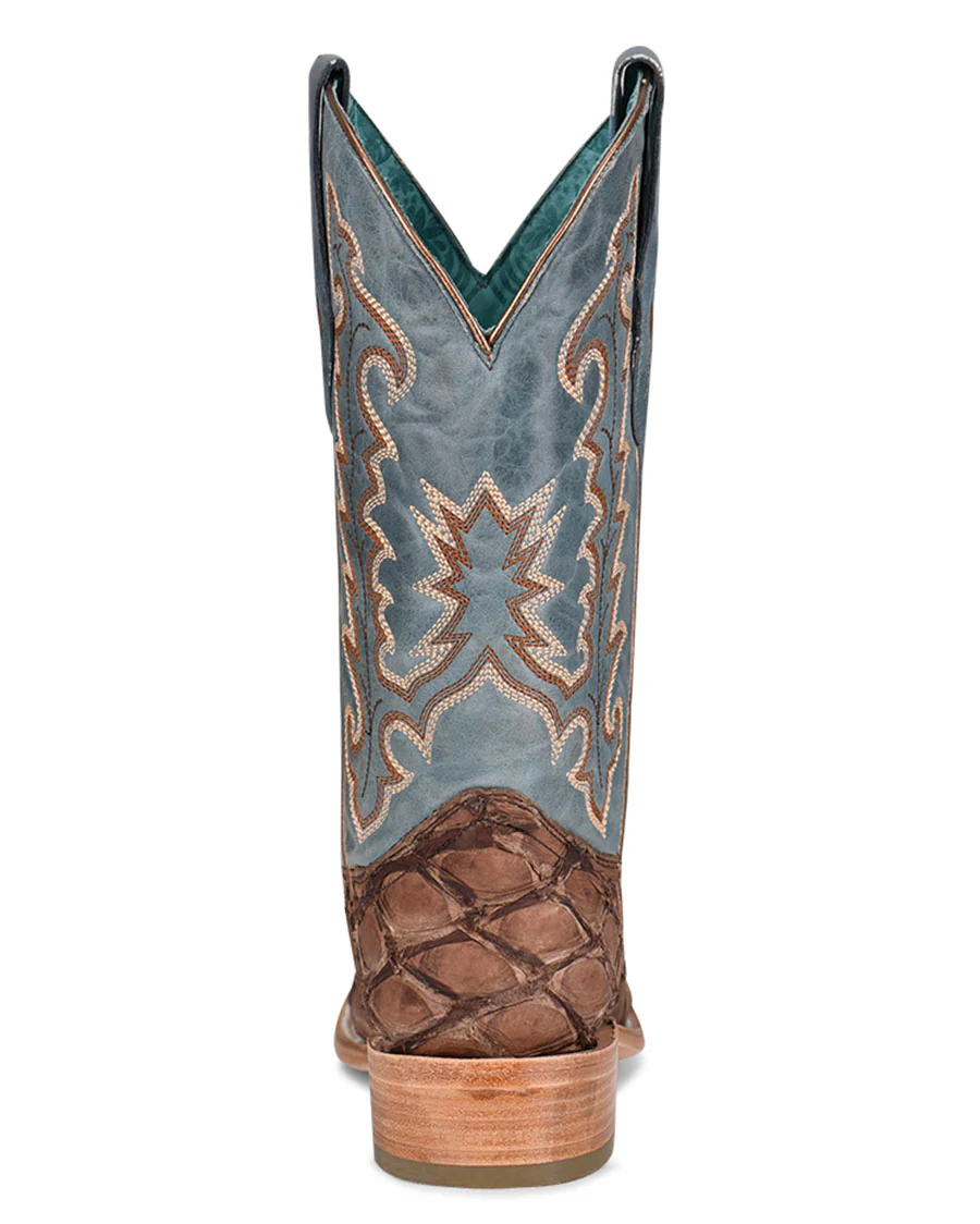 Introducing the all-new Corral Women's Fish Embroidery Western Boots — a contemporary blend of fashion, comfort, and elegance, tailored exclusively for the modern cowgirl seeking a touch of extravagance. These unique boots blend premium craftsmanship, exotic materials, and a commitment to quality that sets them apart from the competition. Featuring an exotic, Pirarucu tan fish, not only adds a distinct texture and style but also ensures long-lasting durability and resistance to the elements — a perfect choice for the contemporary woman passionate about nature and sustainability. The striking blue embroidered shaft embodies the spirit of the wild, bringing life and character to the boot while perfectly balancing the rich tan fish. Each intricate detail is meticulously crafted to offer an unparalleled level of charm and beauty. The delicate tan and white embroidery gracing the shaft adds an extra dose of luxury to this timeless design. Exuding confidence with its stylish square toe, the Corral Women's Fish Embroidery Western Boots make a bold statement while offering maximum comfort and support. This contemporary design combines the best of classic Western style and modern trends, ensuring that you will always stand out in any crowd.