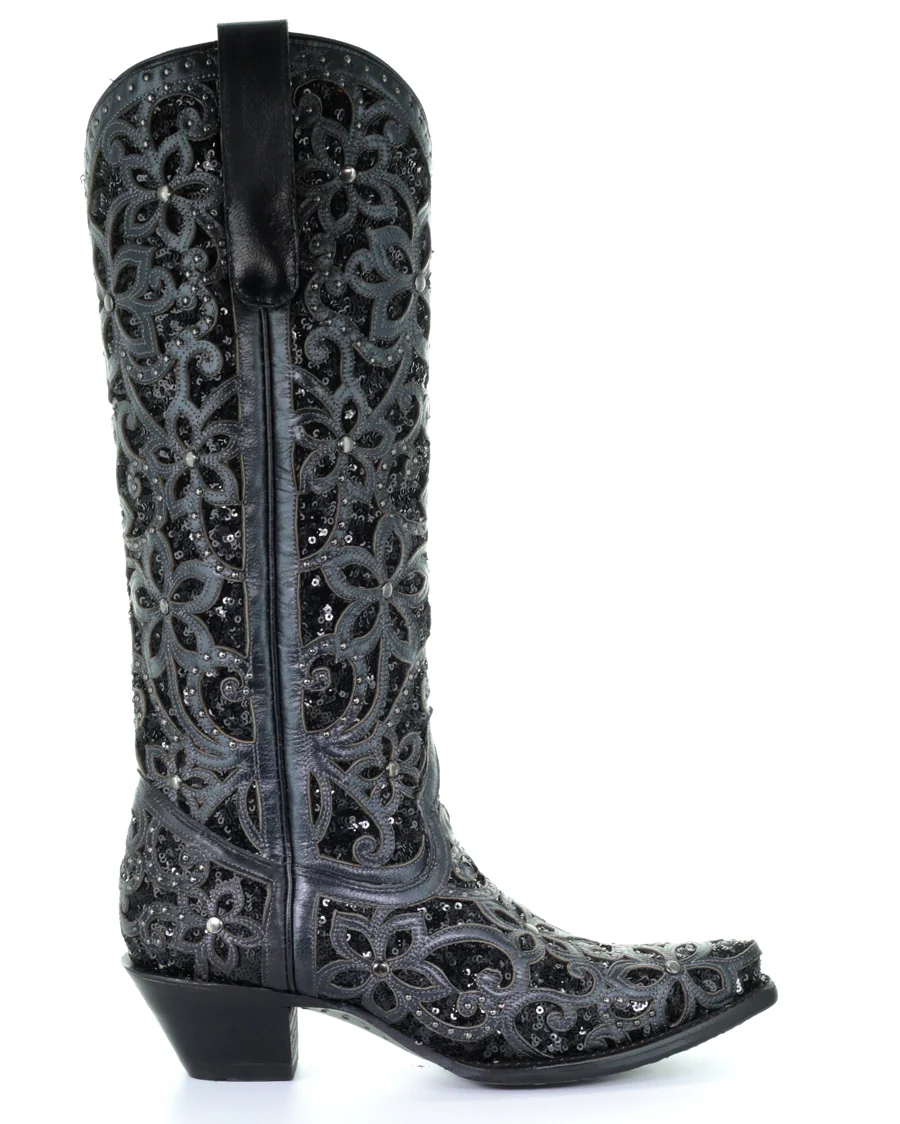 Introducing the Corral Women's Full Floral Inlay Boots - an unparalleled blend of sophistication and versatility that will elevate your wardrobe to new heights. These striking all-black boots feature intricately designed all-over black inlays, adding a subtle touch of style to your ensemble without overpowering your look. Studded with attention to detail, these boots not only look great but offer enhanced durability to withstand your adventurous lifestyle. With these Corral Women's Full Floral Inlay Boots, you're not only investing in a pair of highly universal boots but also embracing the added style that sets them apart. Whether it's a night out dancing, a day at the office, or a leisurely weekend – these boots are your ultimate go-to option for any occasion. Don't miss your chance to own a pair of these truly versatile and stylish statement pieces!